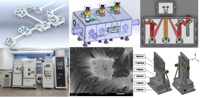 J 课题二正在开展高重频连续打靶系统及等离子体镜系统研制,完成了重频打靶系统初步设计,可实现重频1Hz,载靶量>500发,动态位移精度高于8μm;同时进行超薄纳米靶材批量制备方案研制及表征平台搭建与工艺优化平台搭建;完成了加速靶场真空腔体的设计。