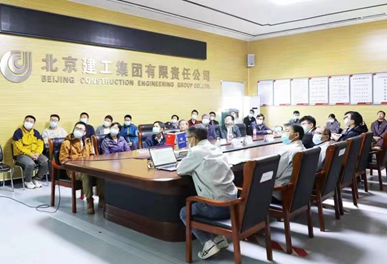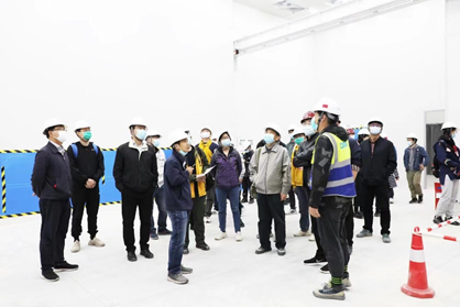 颜学庆一行首先询问了北京激光加速创新中心的实际建设情况并与施工单位等进行座谈。会上,施工单位北京建工集团激光加速项目技术总工杜志桐详细汇报了项目工程的进展,介绍了目前激光加速创新中心内外装饰装修部分,机电管道部分,洁净区域部分的工程施工进度。其表示虽受疫情管控现场进度有所影响,但目前正加强调度、落实协调保障,全力以赴推进项目如期竣工交付。