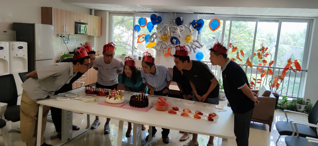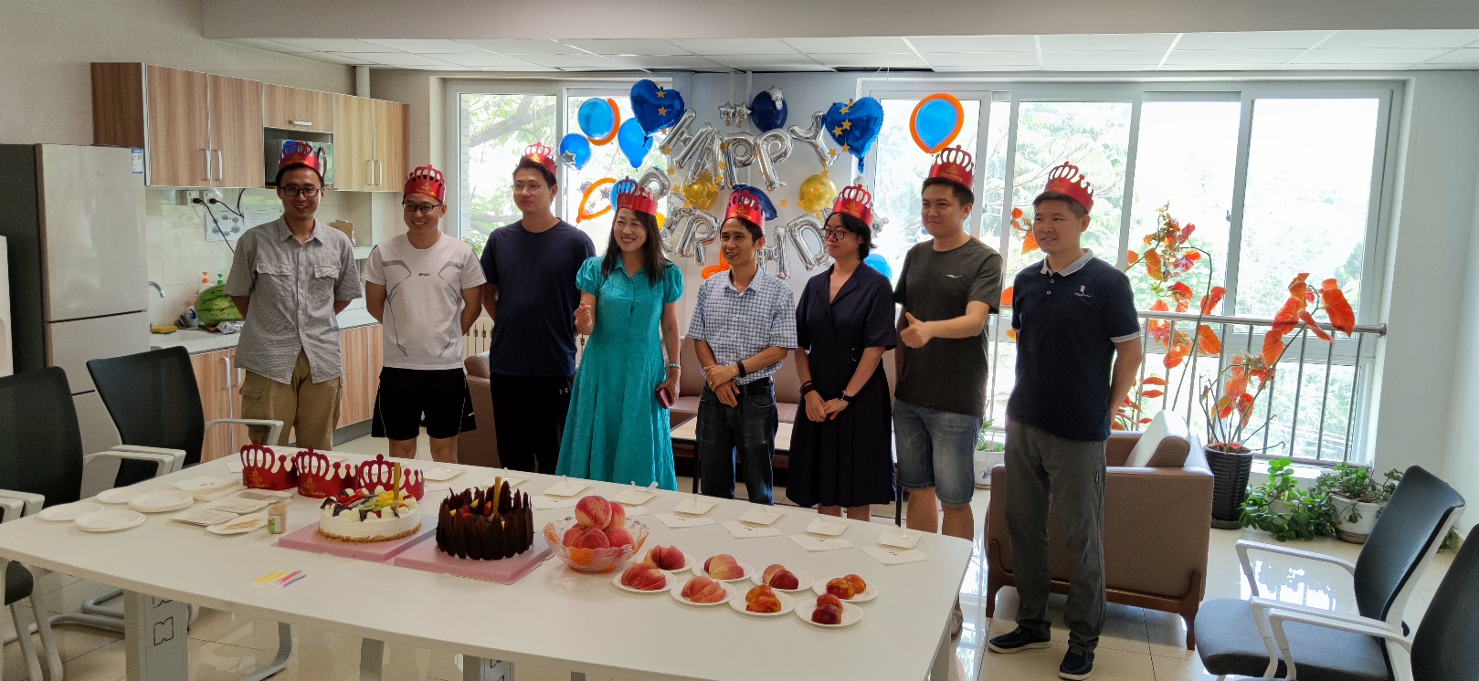 7月16日,夏日炎炎,北京激光加速创新中心举办了首届集体生日会。大家准备了美味的生日蛋糕和水果,精心装扮了激光等离子体实验楼大厅,在喜乐的氛围中为5月、6月、7月份过生日的寿星们送上生日祝福!送去一丝清凉!本次生日会的寿星有王科栋老师、陈式有老师、赵研英老师、高营老师、李英杰老师、颜学庆老师、耿易星老师、吴笛老师、郭恩硕老师、杨根老师。虽然有的老师因公务在外没能赶到现场,但是大家分别通过微信等线上方式,也为他们送上生日祝福。