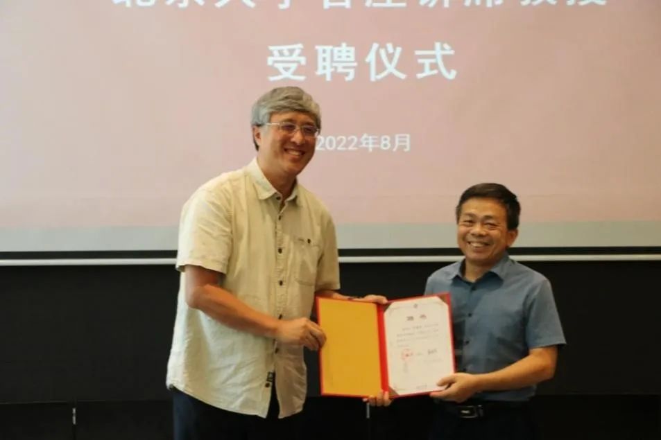 随后,高原宁院长为万宝年院士颁发了北京大学客座讲席教授聘书。