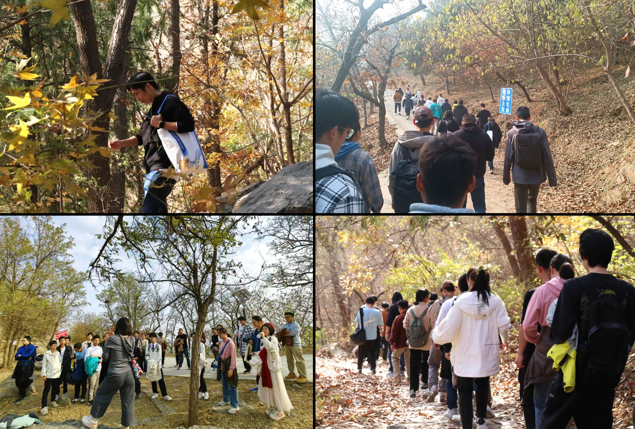 在颜老师的带领下,师生们从西山林场出发。一路上大家欢歌笑语,互相帮助,时而停下拍照,记录下这美好的时刻。赵老师借这个机会,沿途讲解香山的历史文化与地理环境,激发了学生们浓厚的学习兴趣。
