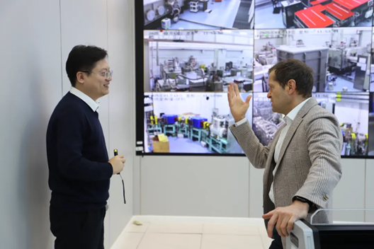 在参观实验室的过程中,马文君教授通过中央控制室实时监控画面,向Ferenc Krausz教授详细介绍了设备当前阶段的调试运行情况,以及装置各部分的组成和功能,并解释了每个子系统在整体治疗系统中所发挥的关键作用。马文君教授和Ferenc Krausz教授深情回忆起了在德国合作研究的一些场景,Ferenc Krausz教授为中心取得的科研成果给予了高度的评价以及真诚的祝贺,希望未来有更多深入交流合作的机会。